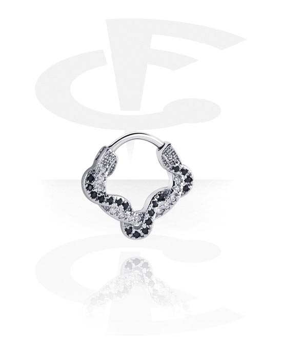 Pírsingový clicker (chirurgická oceľ, strieborná, lesklý povrch) s kryštálové kamene