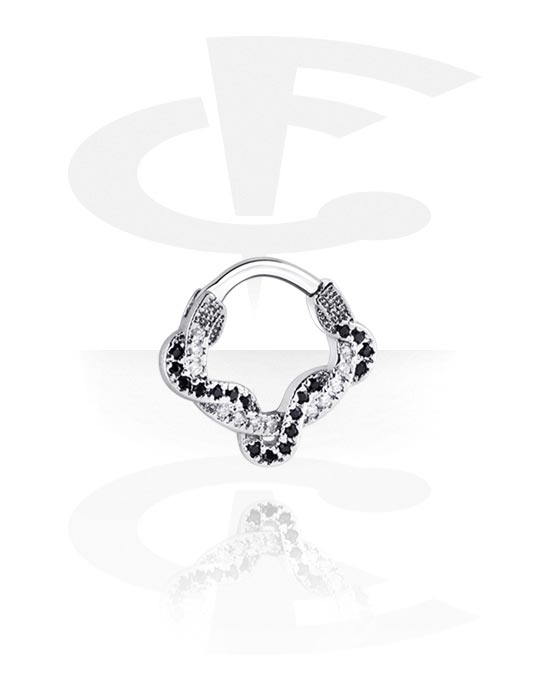 Pírsingový clicker (chirurgická oceľ, strieborná, lesklý povrch) s kryštálové kamene