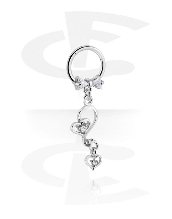 Pírsingový clicker (chirurgická oceľ, strieborná, lesklý povrch) s prívesok srdce a kryštálové kamene