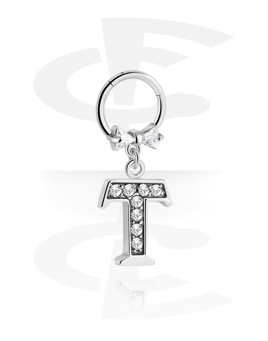 Pírsingový clicker (chirurgická oceľ, strieborná, lesklý povrch) s luk a príveskom s písmenom „T“