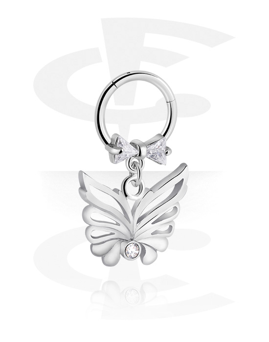 Pírsingový clicker (chirurgická oceľ, strieborná, lesklý povrch) s luk a Prívesok motýľ