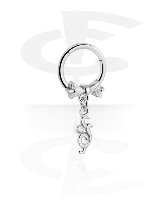 Pírsingový clicker (chirurgická oceľ, strieborná, lesklý povrch) s luk a Prívesok
