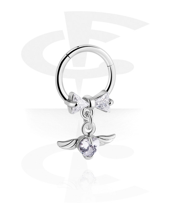 Pírsingový clicker (chirurgická oceľ, strieborná, lesklý povrch) s prívesok srdce a kryštálové kamene