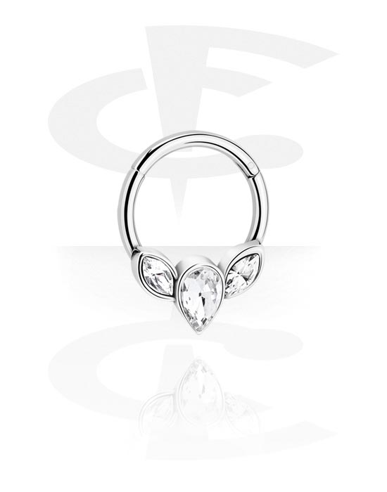 Pírsingový clicker (chirurgická oceľ, strieborná, lesklý povrch) s kryštálové kamene