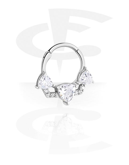 Pírsingový clicker (chirurgická oceľ, strieborná, lesklý povrch) s kryštálové kamene