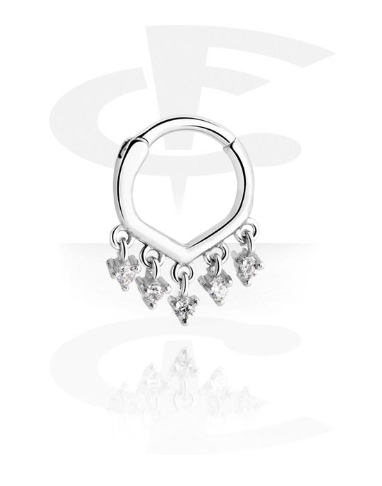 Pírsingový clicker (chirurgická oceľ, strieborná, lesklý povrch) s kryštálové kamene