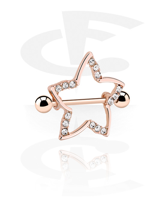 Pírsing do bradavky so štítom s Motív hviezda a kryštálové kamene