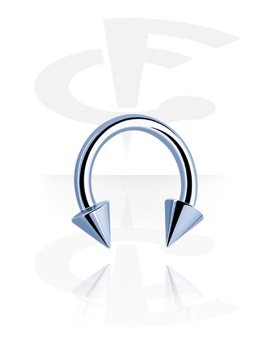 Táto anodizovaná podkova má dva kužele v úžasných trblietavých farbách. Pre super módny vzhľad.