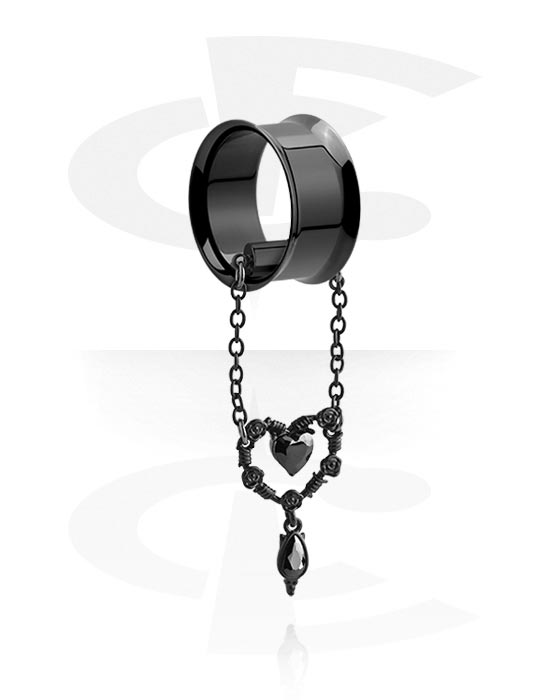 Tunel s rozšírenými koncami (chirurgická oceľ, čierna, lesklý povrch) s prívesok srdce a kryštálové kamene