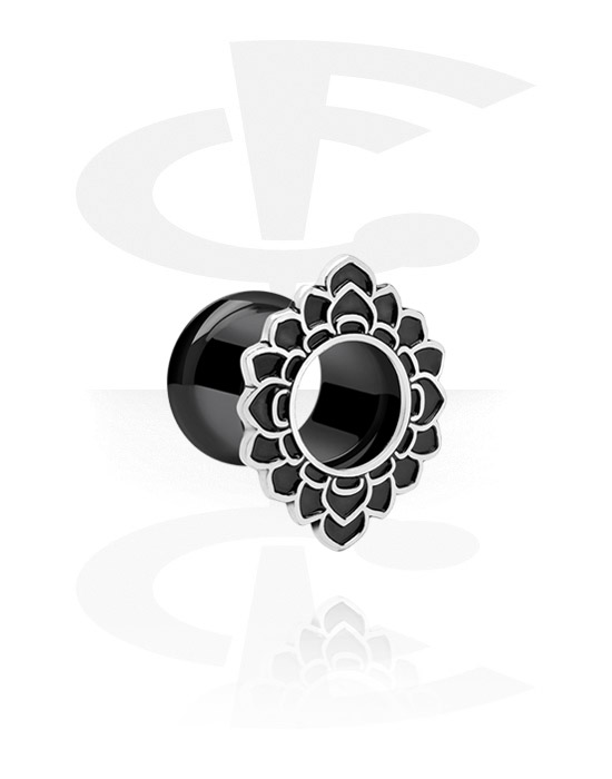 Tunel s rozšírenými koncami (chirurgická oceľ, čierna, lesklý povrch) s dizajnom kvetina