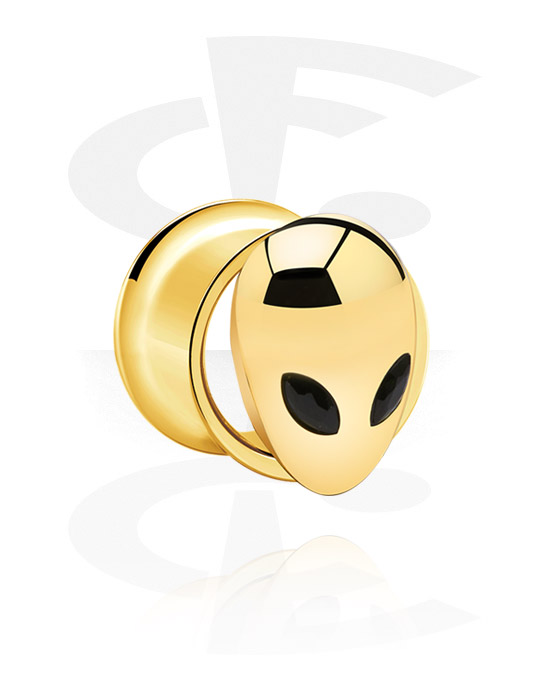 Tunel s rozšírenými koncami (chirurgická oceľ, zlatá, lesklý povrch) s koncovkou mimozemšťan