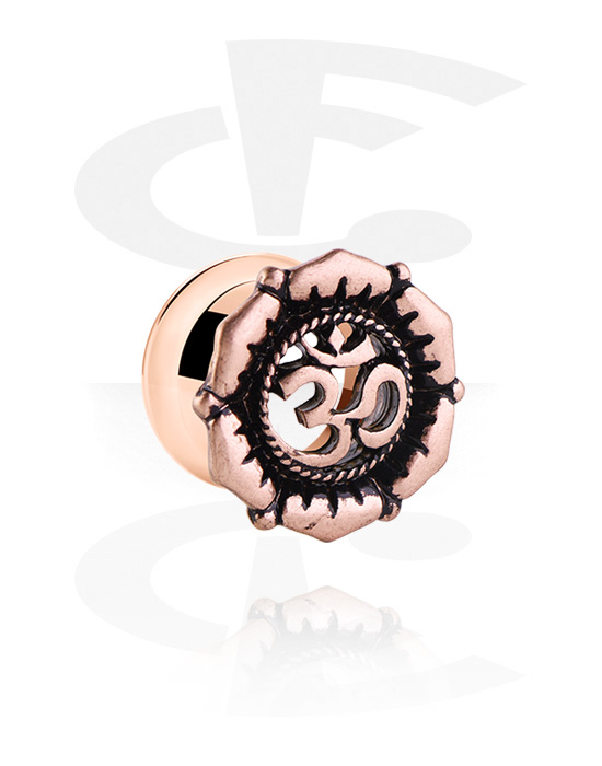 Tunel s rozšírenými koncami (chirurgická oceľ, ružové zlato, lesklý povrch) s nápisom „Om“