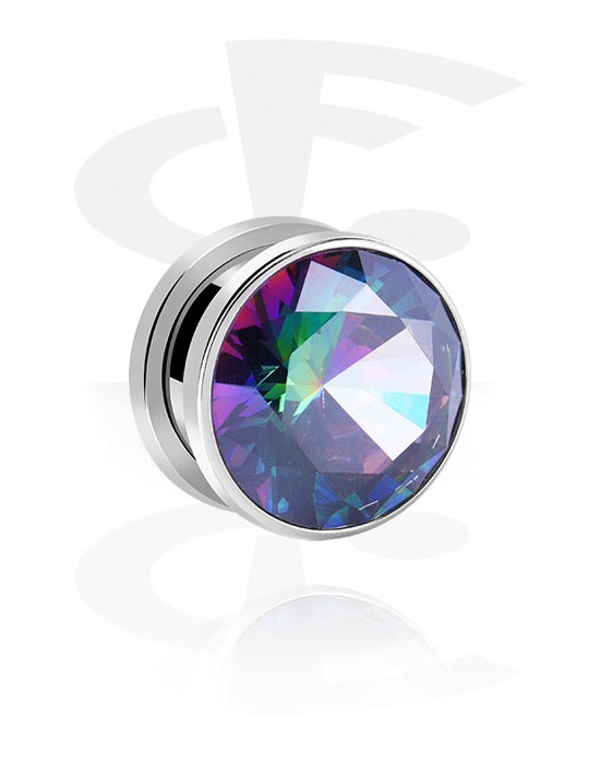 Skrutkovací tunel (chirurgická oceľ, strieborná, lesklý povrch) s Kryštálový kameň