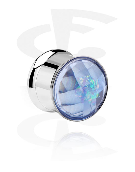 Tunel s rozšírenými koncami (chirurgická oceľ, strieborná, lesklý povrch) s farebným viečkom
