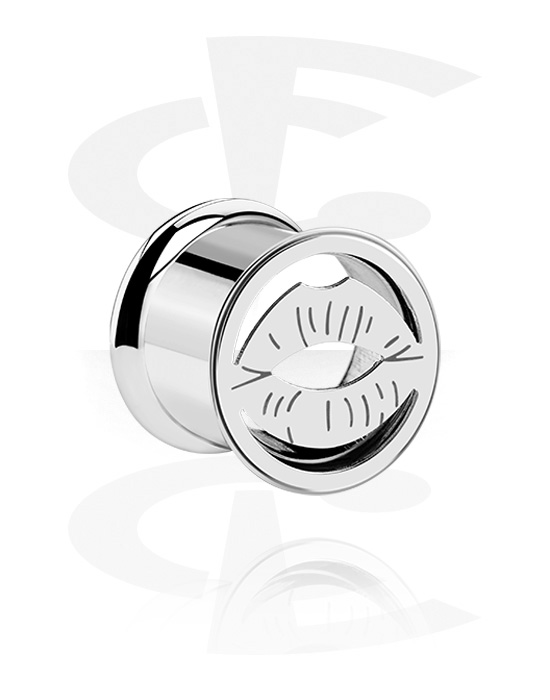 Tunel s rozšírenými koncami (chirurgická oceľ, strieborná, lesklý povrch) s dizajnom pery