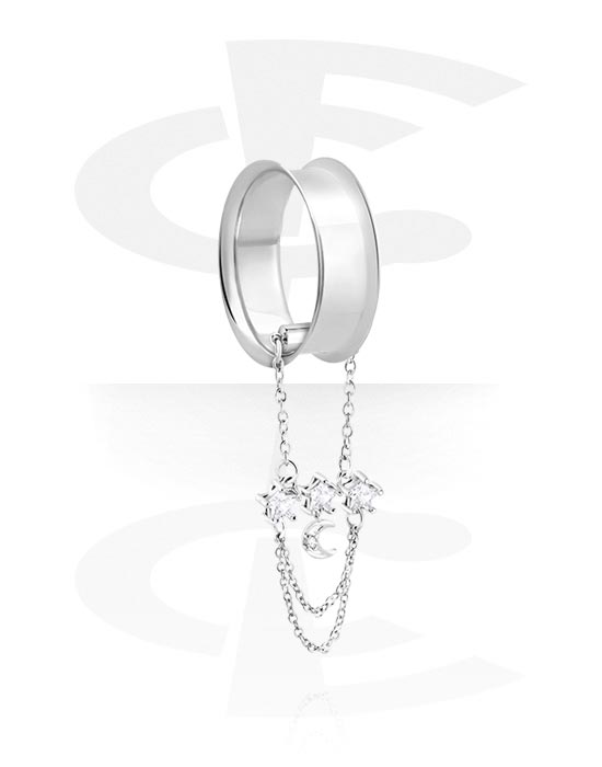 Tunel s rozšírenými koncami (chirurgická oceľ, strieborná, lesklý povrch) s Crescent a kryštálové kamene