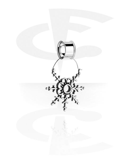 Tunel s rozšírenými koncami (chirurgická oceľ, strieborná, lesklý povrch) s kreolou v kvetinovom dizajne