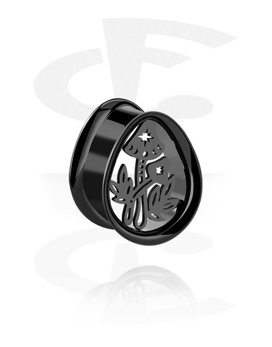 Plug s rozšírenými koncami v tvare slzy (oceľ, čierna, lesklý povrch) s ornamentom