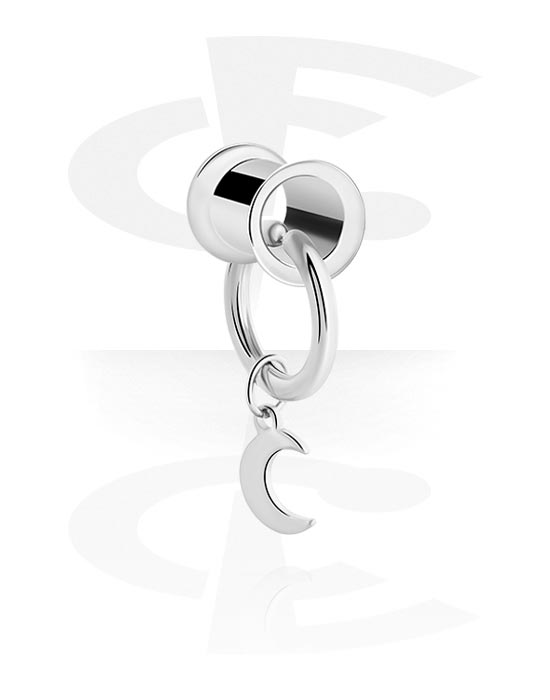 Tunel s rozšírenými koncami (chirurgická oceľ, strieborná, lesklý povrch) s Prívesok polmesiac
