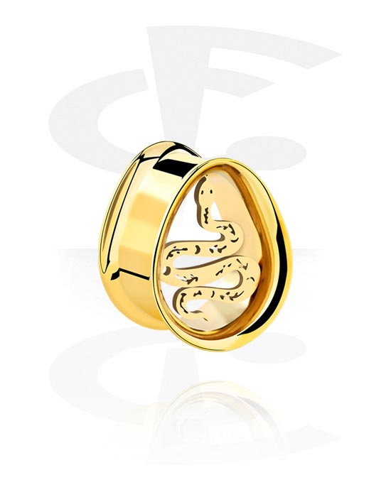 Tunel s rozšírenými koncami v tvare slzy (chirurgická oceľ, zlatá, lesklý povrch) s dizajnom had