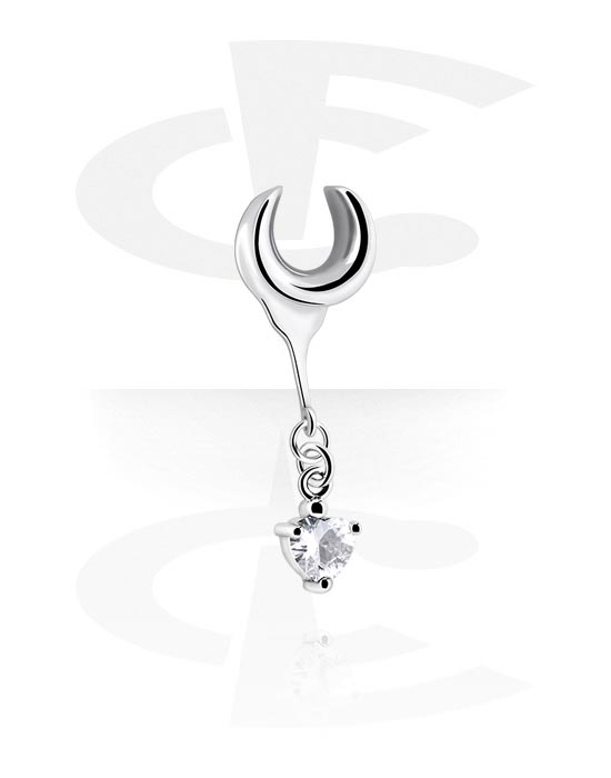 Polovičný tunel (chirurgická oceľ, strieborná, lesklý povrch) s prívesok srdce a Kryštálový kameň
