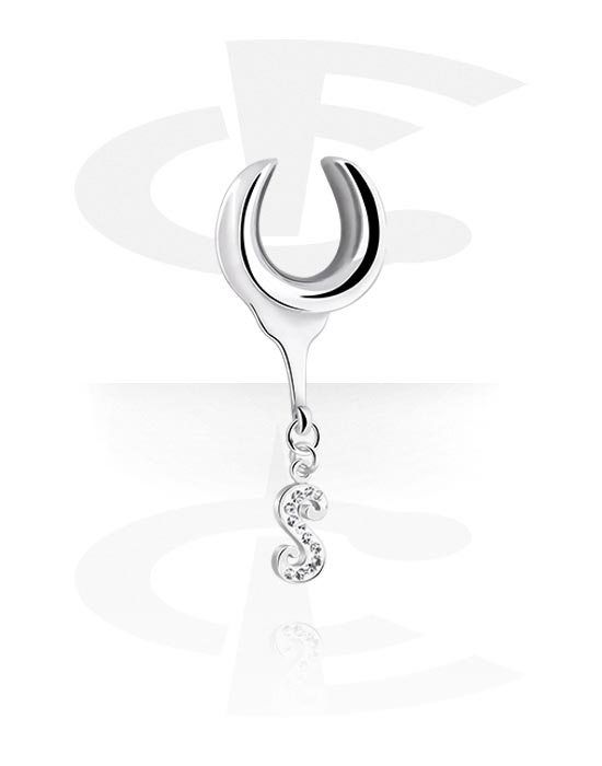 Polovičný tunel (oceľ, strieborná, lesklý povrch) s príveskom s písmenom „S“ a kryštálové kamene