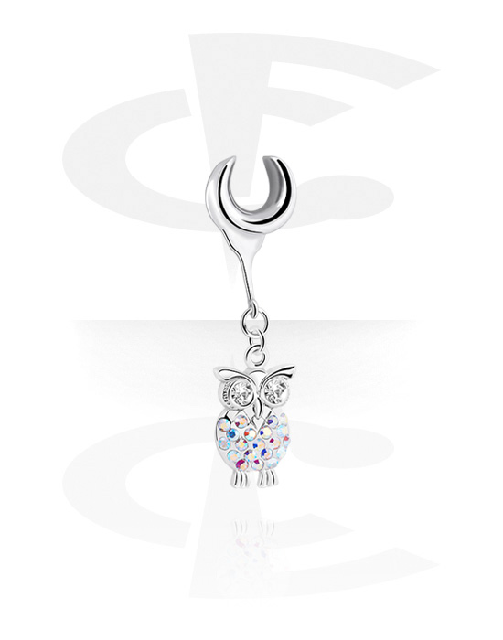 Polovičný tunel (oceľ, strieborná, lesklý povrch) s prívesok sova a kryštálové kamene
