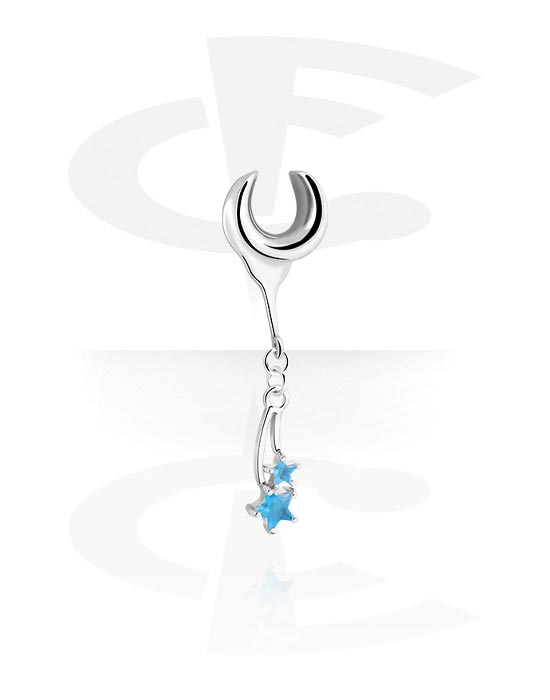 Polovičný tunel (chirurgická oceľ, strieborná, lesklý povrch) s prívesok hviezda a kryštálové kamene