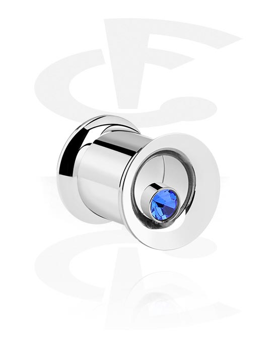 Tunel s rozšírenými koncami (chirurgická oceľ, strieborná, lesklý povrch) s Kryštálový kameň