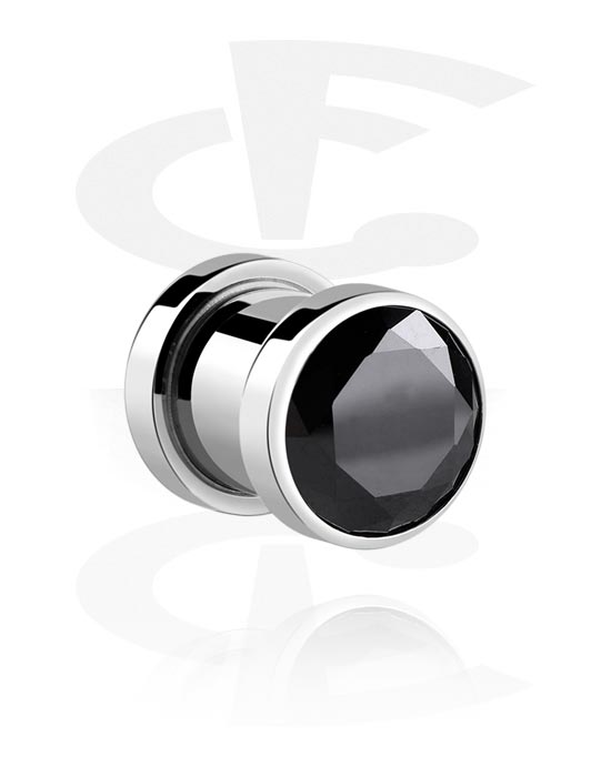 Skrutkovací tunel (chirurgická oceľ, strieborná, lesklý povrch) s Kryštálový kameň