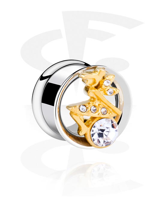 Tunel s rozšírenými koncami (chirurgická oceľ, strieborná, lesklý povrch) s dizajnom víla a kryštálové kamene