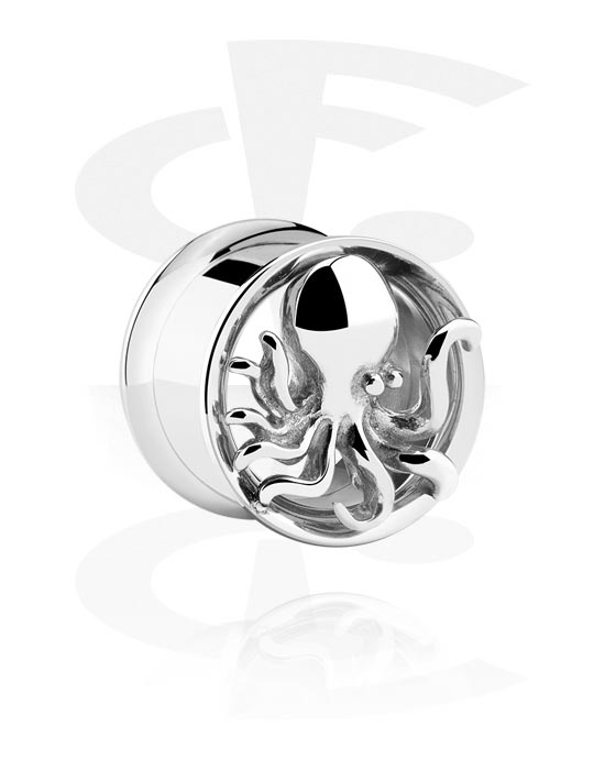 Tunel s rozšírenými koncami (chirurgická oceľ, strieborná, lesklý povrch) s Motív chobotnica