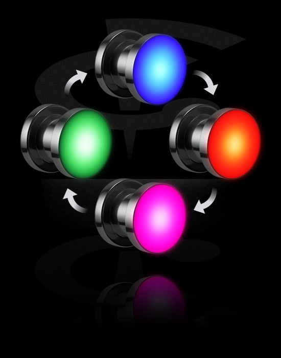 Skrutkovací tunel (chirurgická oceľ, strieborná, lesklý povrch) s LED koncovkou