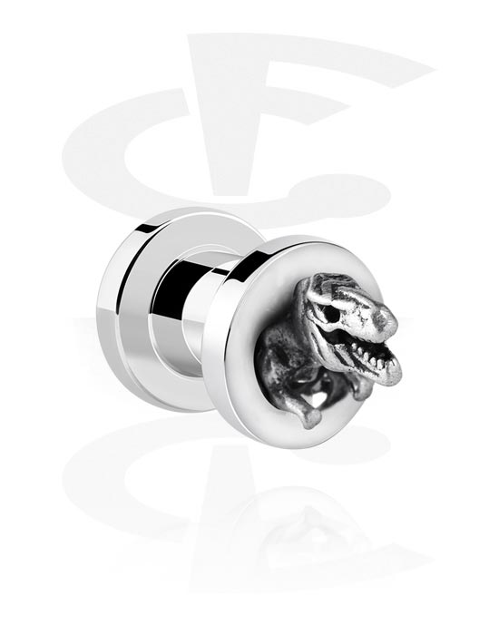 Skrutkovací tunel (chirurgická oceľ, strieborná, lesklý povrch) s dizajnom T-Rex