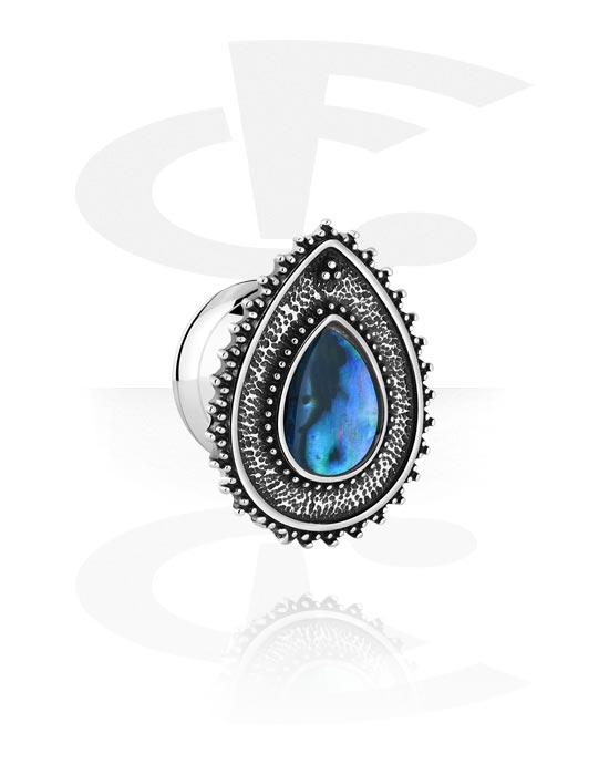 Tunel s rozšírenými koncami (chirurgická oceľ, strieborná, lesklý povrch) s koncovkou v tvare slzy
