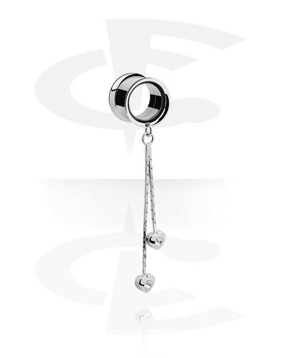 Tunel s rozšírenými koncami (chirurgická oceľ, strieborná, lesklý povrch) s prívesok srdce a kryštálové kamene