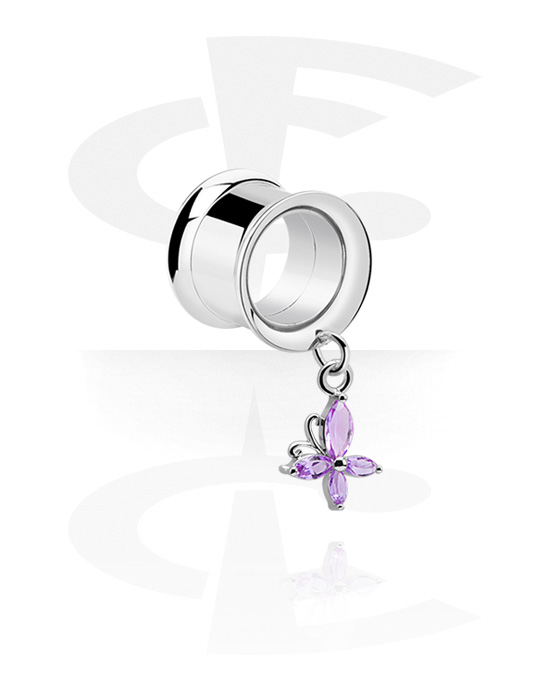 Tunel s rozšírenými koncami (chirurgická oceľ, strieborná, lesklý povrch) s príveskom kvetina
