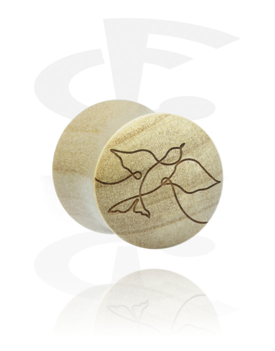 Plug s rozšírenými koncami (drevo) s laserovým gravírovaním „vtáky jednou čiarou“