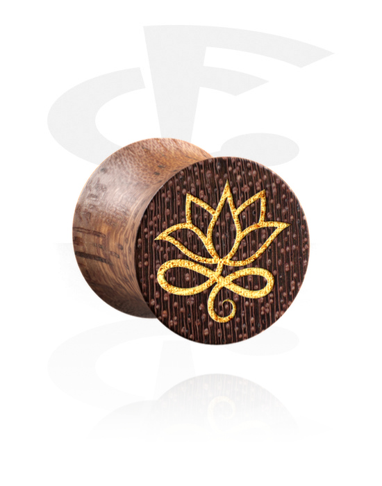 Plug s rozšírenými koncami (drevo) s laserovým gravírovaním „zlatý lotosový kvet“