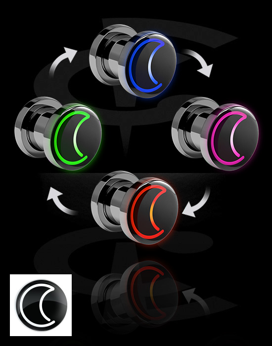 Skrutkovací tunel (chirurgická oceľ, strieborná, lesklý povrch) s LED koncovkou a Motív mesiac