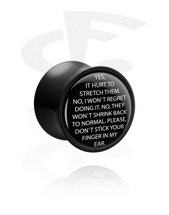 Plug s rozšírenými koncami (akryl, čierna) s nápisom „Yes, it hurt to stretch them...“