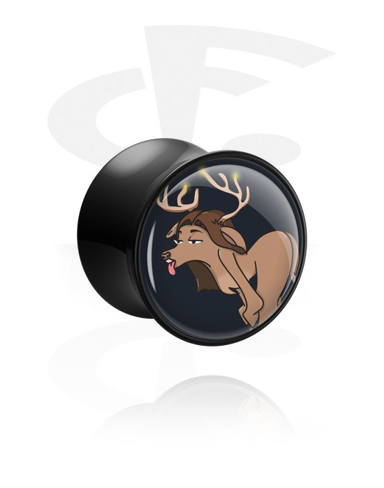 Plug s rozšírenými koncami (akryl, čierna) s vianočným dizajnom „nezbedný jeleň“