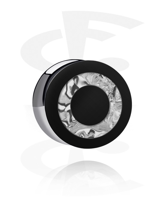 Plug s rozšírenými koncami (akryl, čierna) s dizajnom kruh a Perleťová intarzia