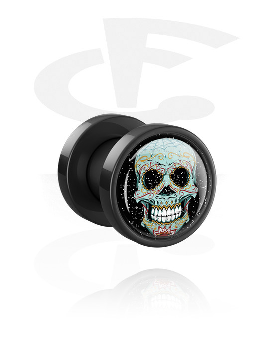 Skrutkovací tunel (akryl, čierna) s dizajnom cukrová lebka „Dia de Los Muertos“