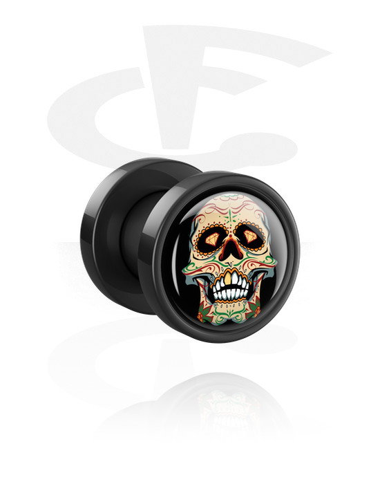 Skrutkovací tunel (akryl, čierna) s dizajnom farebná cukrová lebka „Dia de Los Muertos“