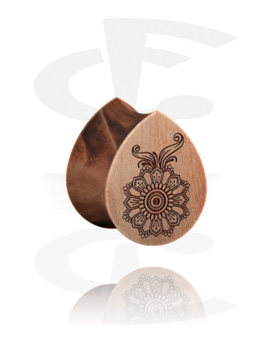 Plug s rozšírenými koncami v tvare slzy (drevo) s laserovým gravírovaním „kvetina“