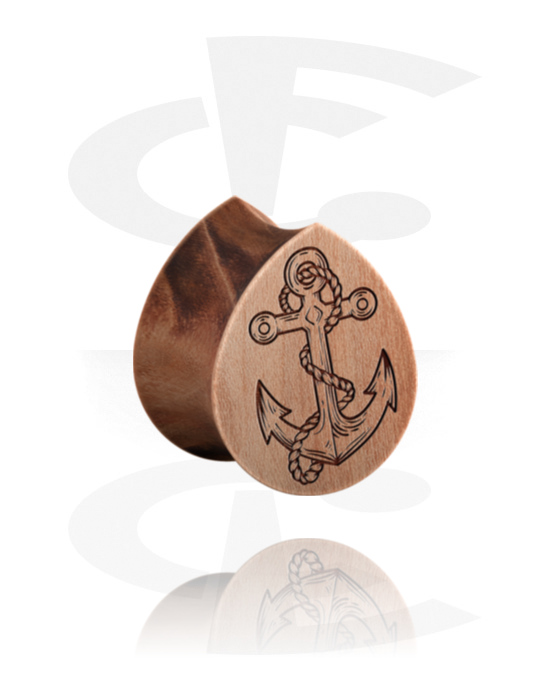 Plug s rozšírenými koncami v tvare slzy (drevo) s laserovým gravírovaním „kotva“
