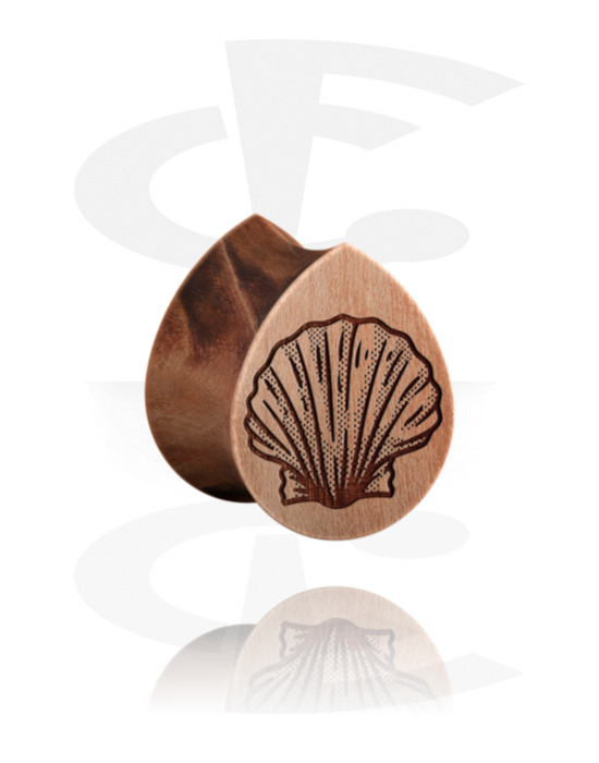 Plug s rozšírenými koncami v tvare slzy (drevo) s laserovým gravírovaním „mušľa“