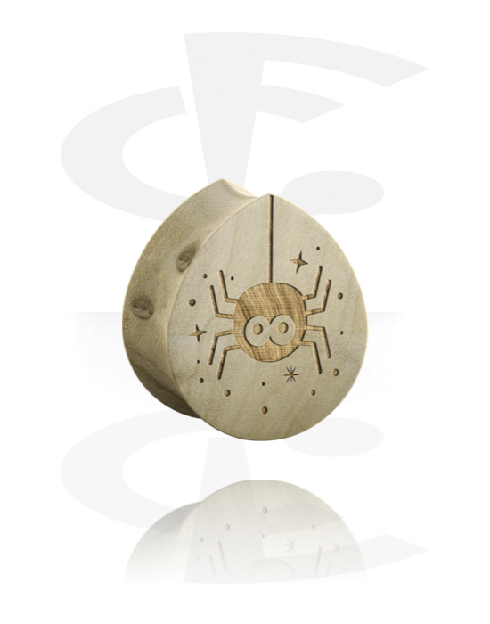Plug s rozšírenými koncami v tvare slzy (drevo) s laserovým gravírovaním „pavúk“