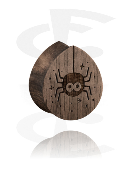 Plug s rozšírenými koncami v tvare slzy (drevo) s laserovým gravírovaním „pavúk“
